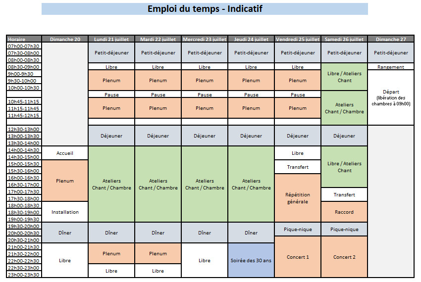 • ateliers facultatifs (vocaux ou musique de chambre en après-midi).