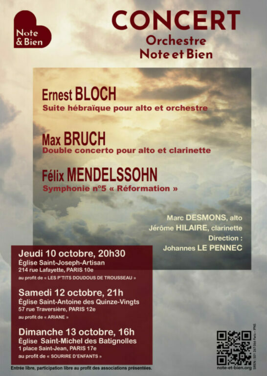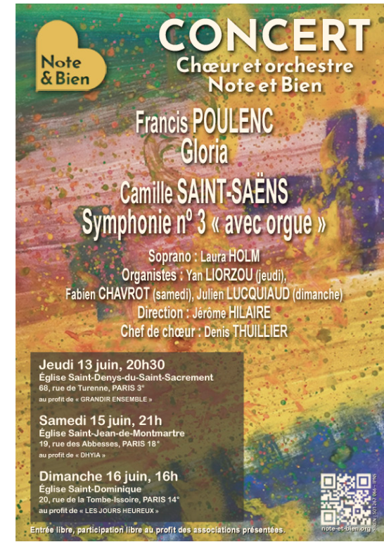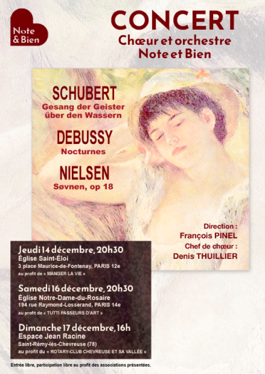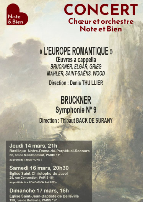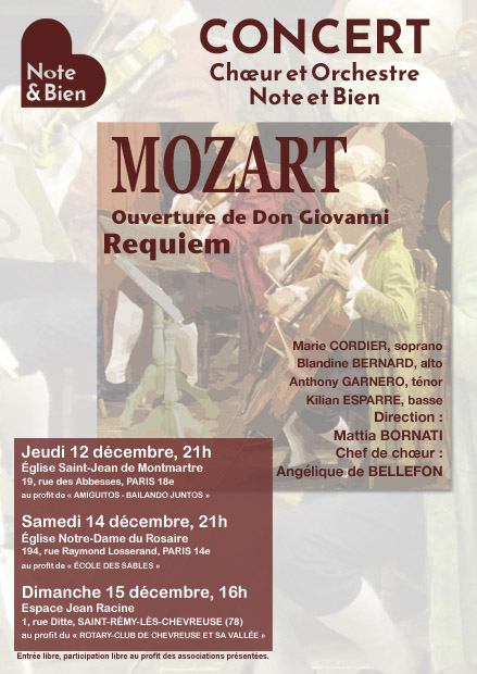 Le Choeur et l’Orchestre Note et Bien organisent chaque année quatre séries de trois concerts.